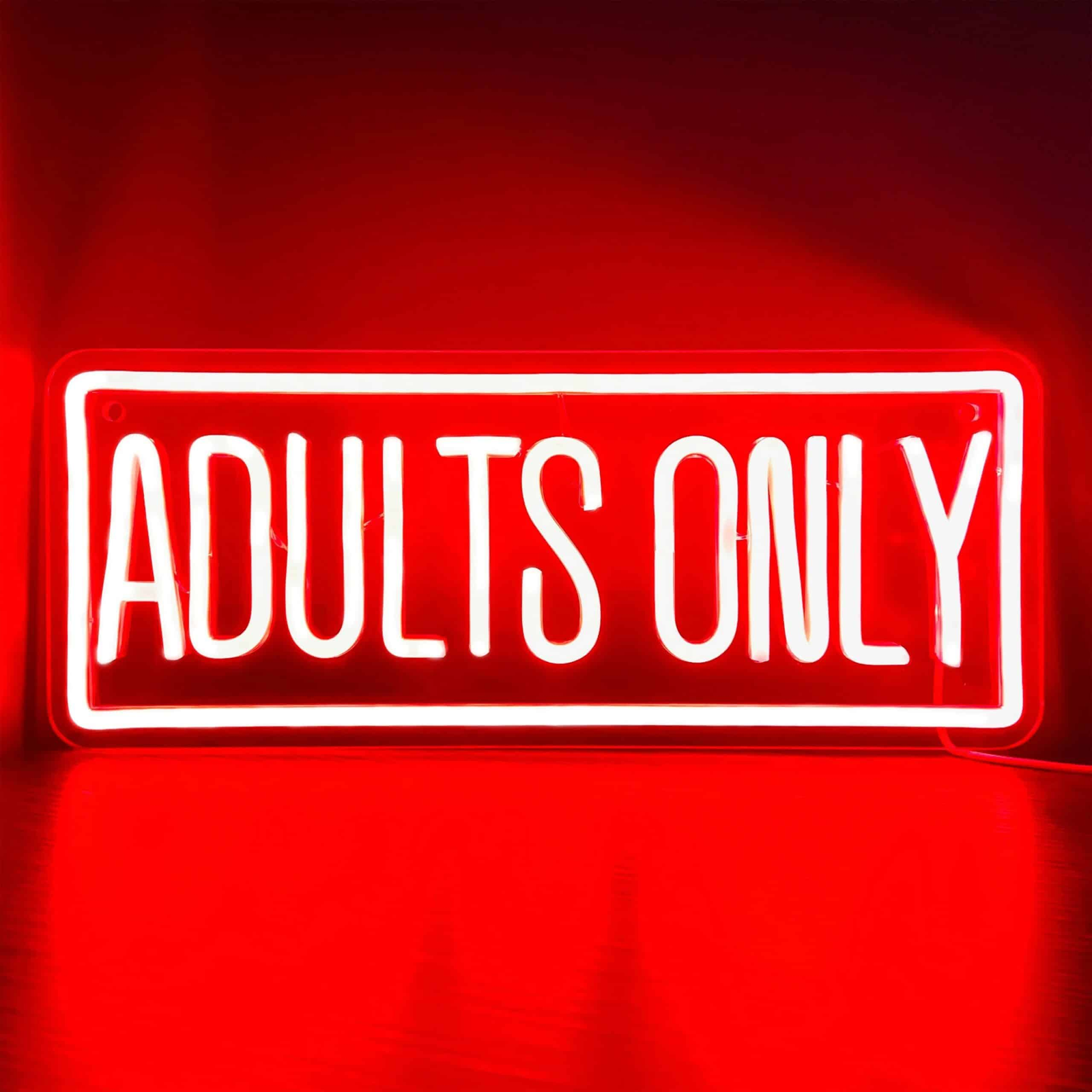 Le design rectangulaire et épuré du néon Adults Only lui confère un aspect professionnel et autoritaire.