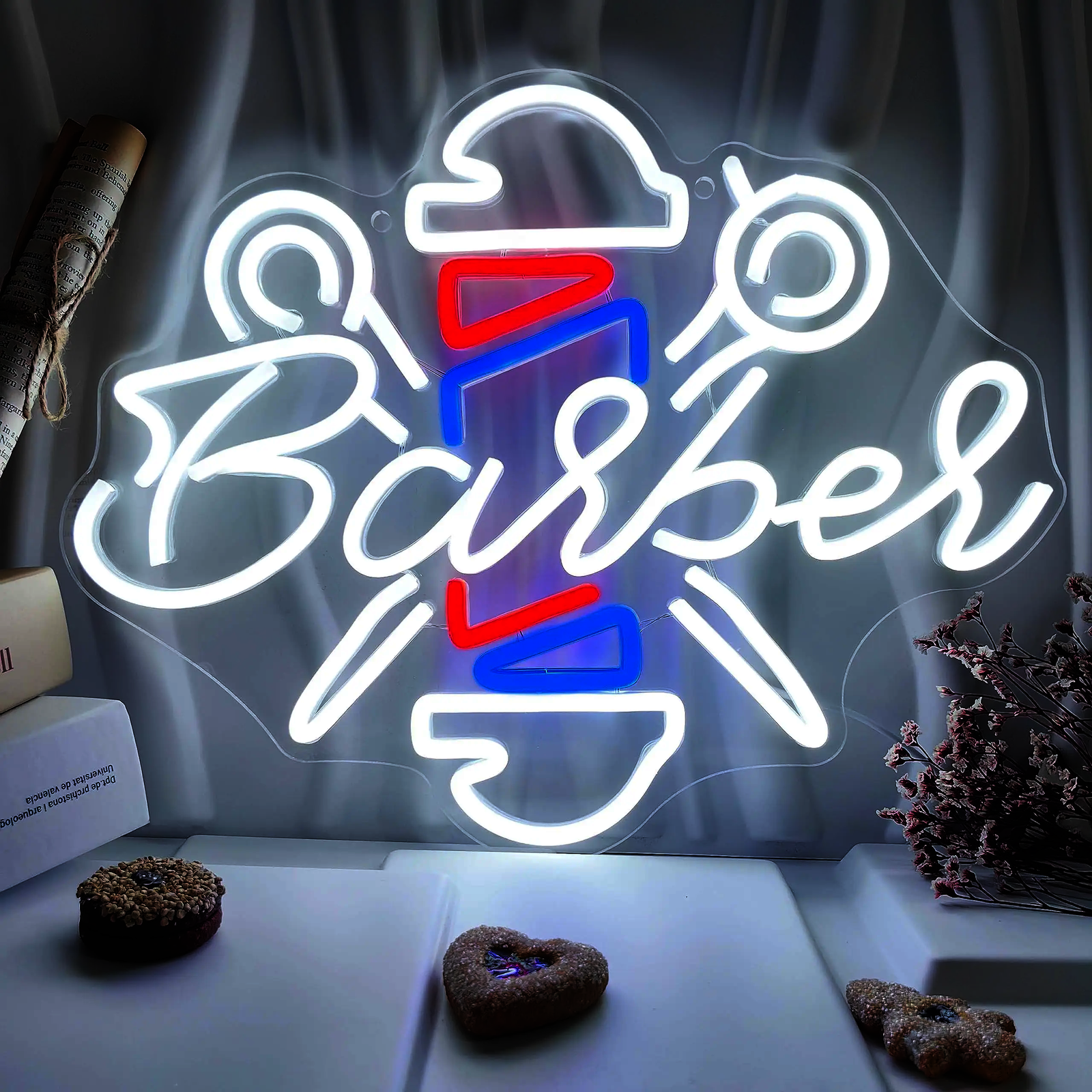 Le Néon Barbier capture l’essence vintage d’un salon de coiffure traditionnel.