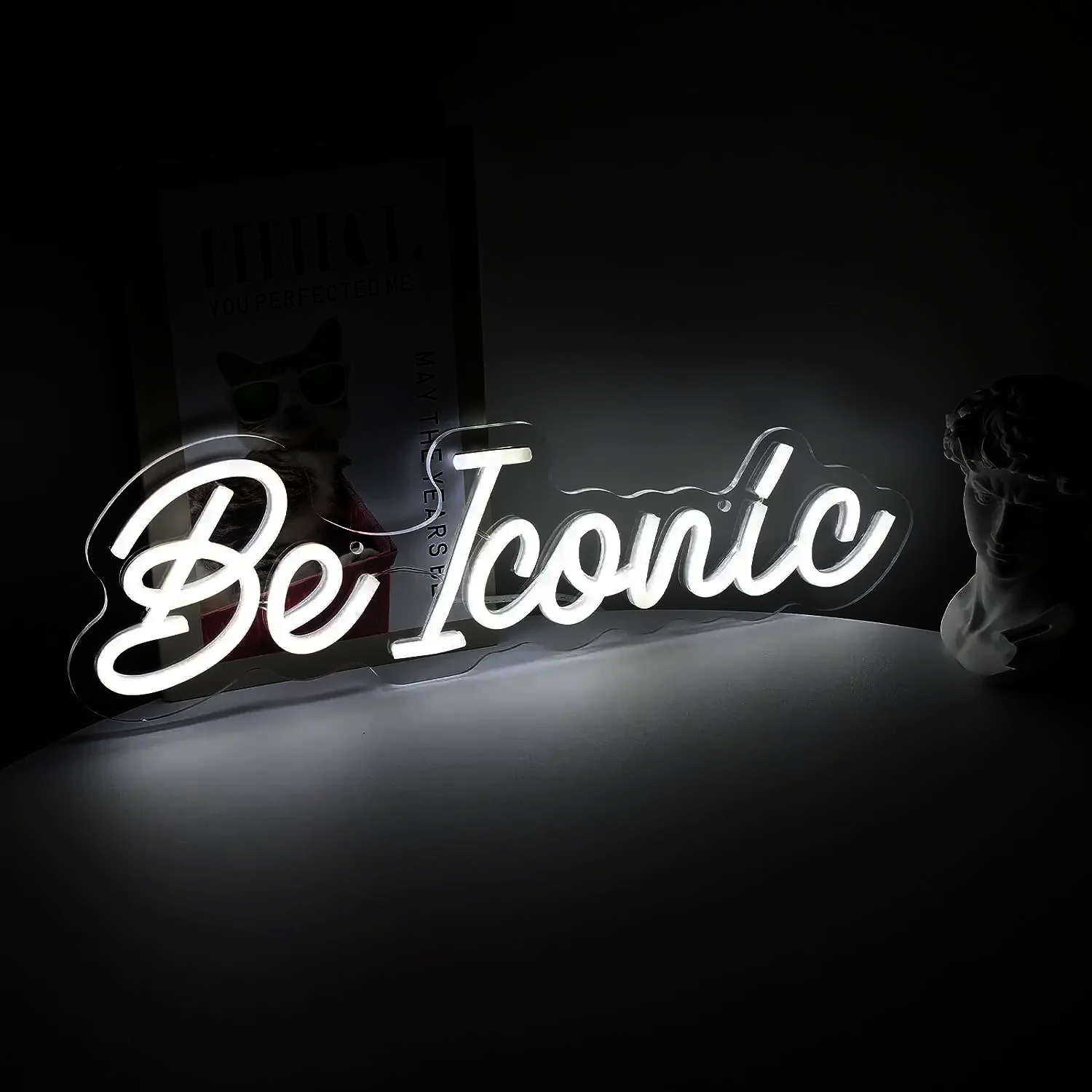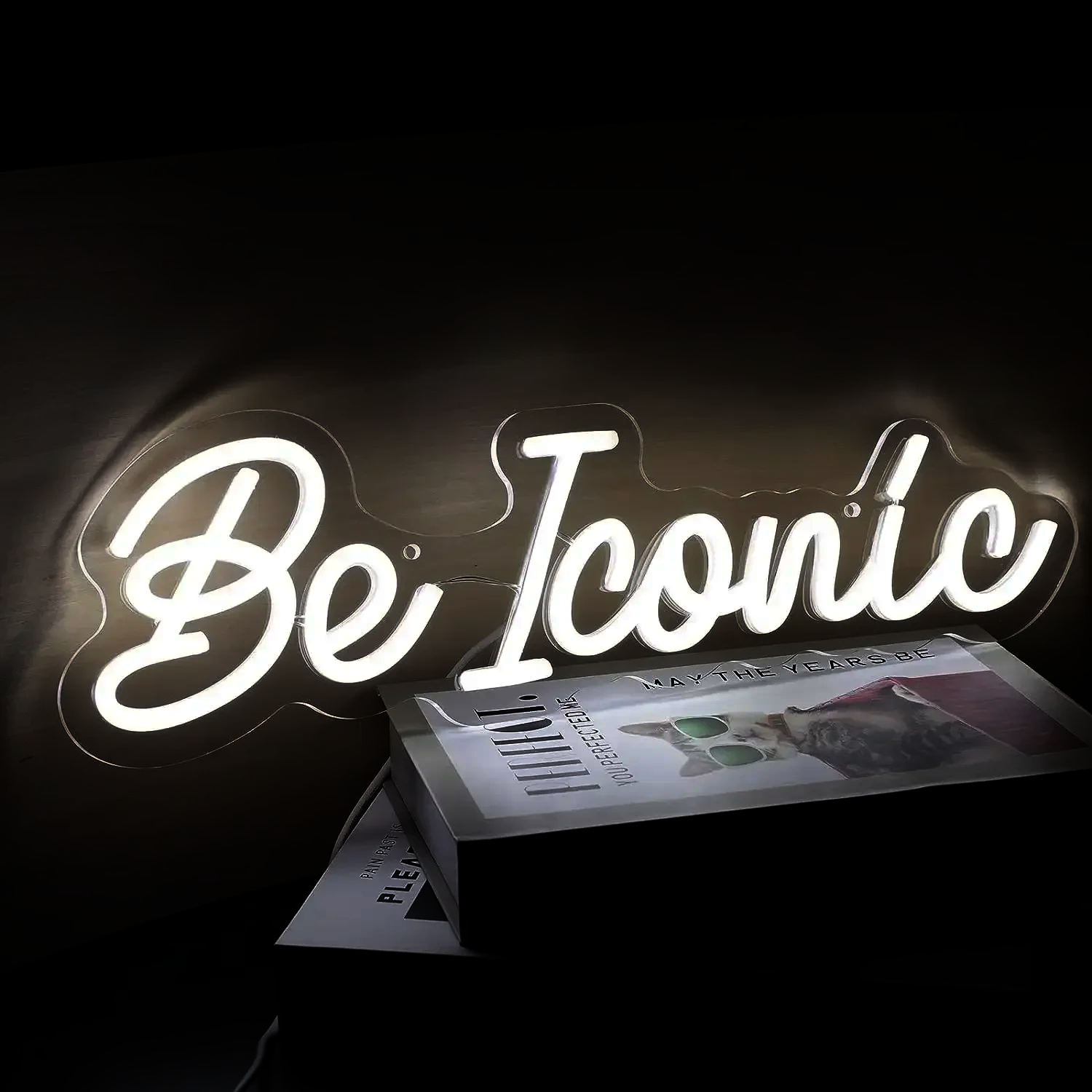 Le Néon Be Iconic affiche un message inspirant (“Soyez Iconique”) dans une écriture fluide et gracieuse.