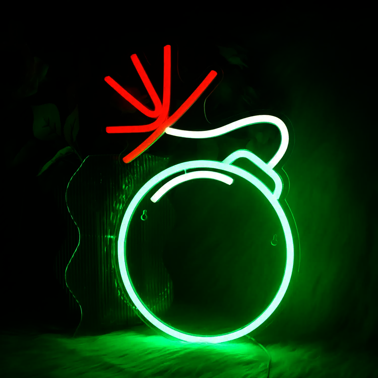 Le Néon Bombe représente une bombe stylisée, évoquant un design classique de dessin animé ou de jeu vidéo rétro.