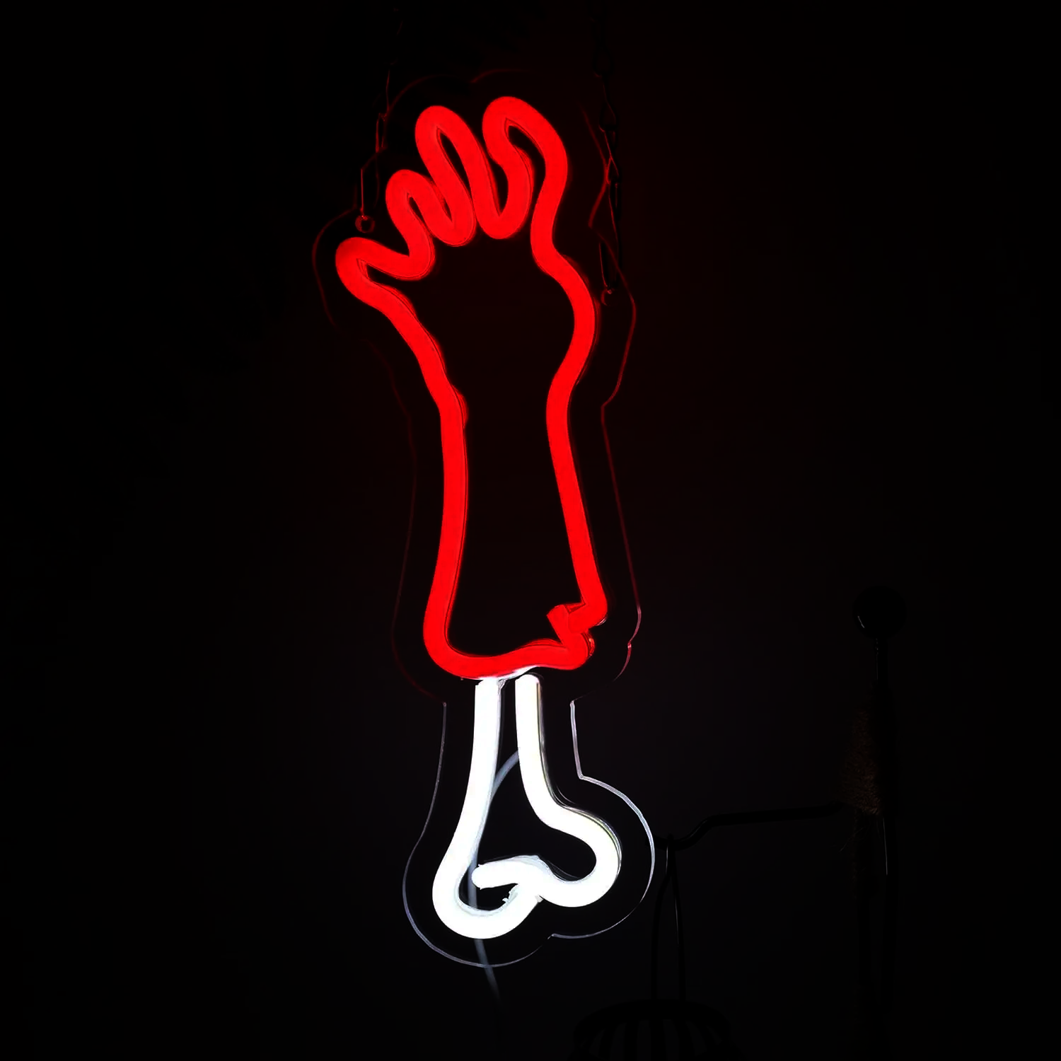 Ce Néon Bras de Zombie Arraché puise son inspiration dans l’univers des films d’horreur et des classiques du zombie, évoquant la terreur d’une main macabre qui sort de la terre pour agripper sa proie.