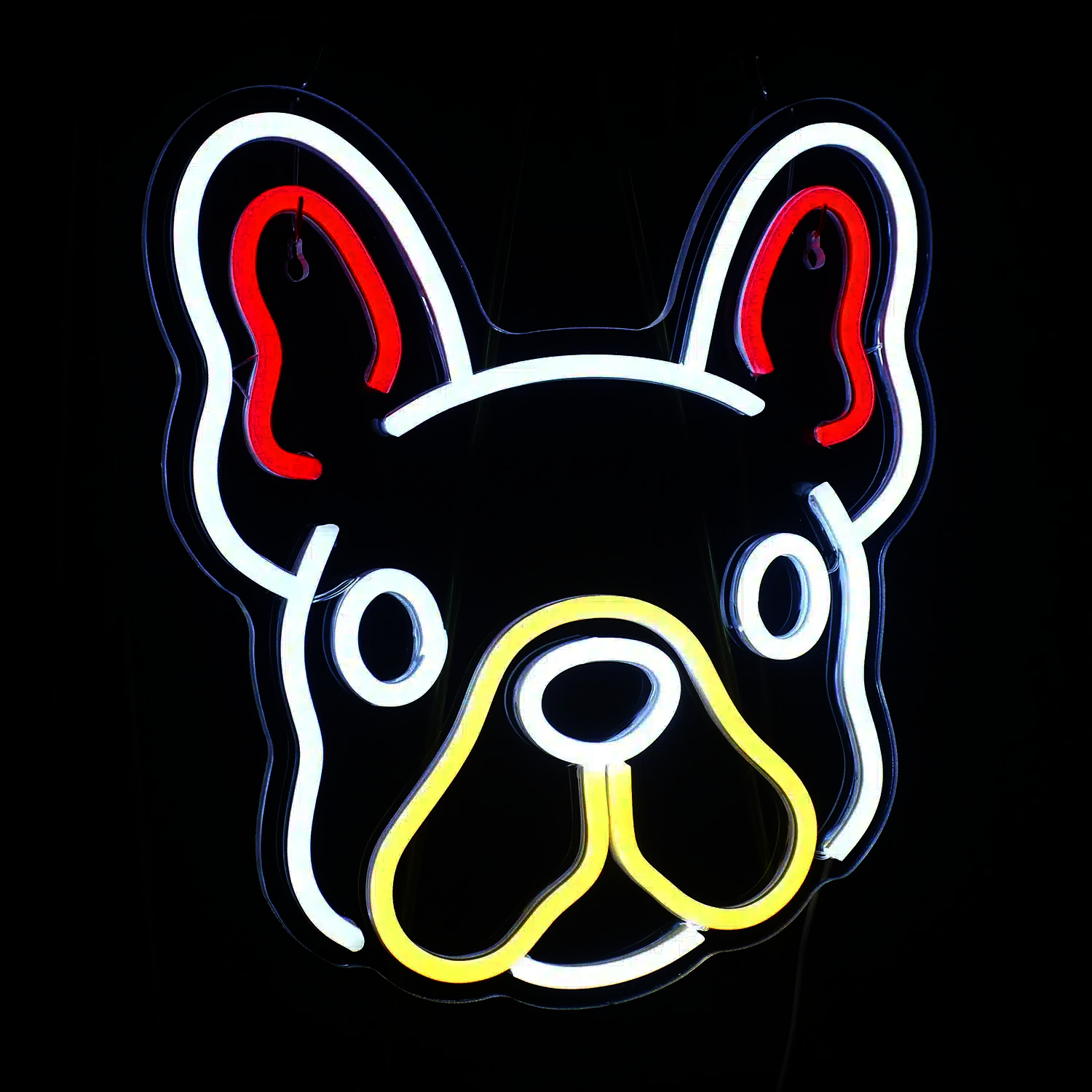 Ce néon met en lumière les caractéristiques distinctives de cette race populaire, connue pour son apparence robuste et son expression charmante.