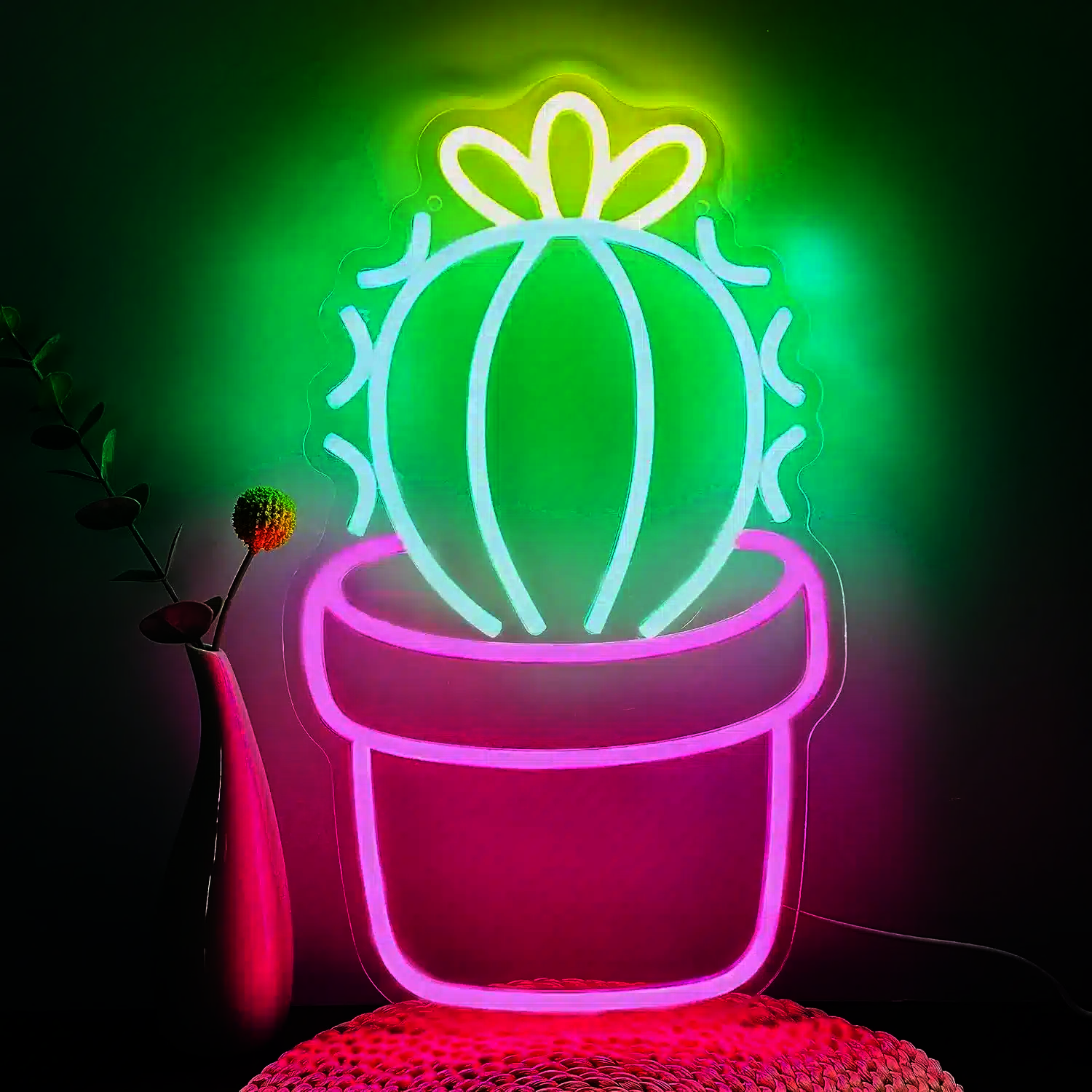Le Néon Cactus Boule représente un adorable cactus miniature dans son pot.
