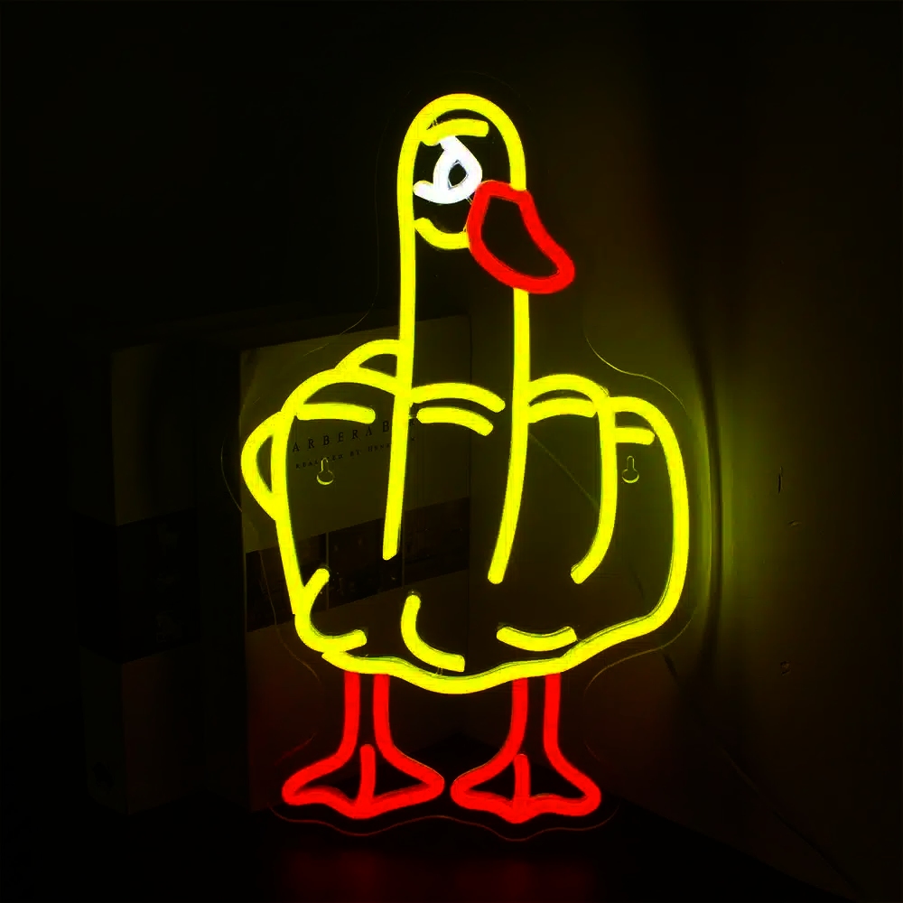 Ce Néon canard doigt d’honneur séduira les amateurs d’humour décalé et de designs provocateurs.