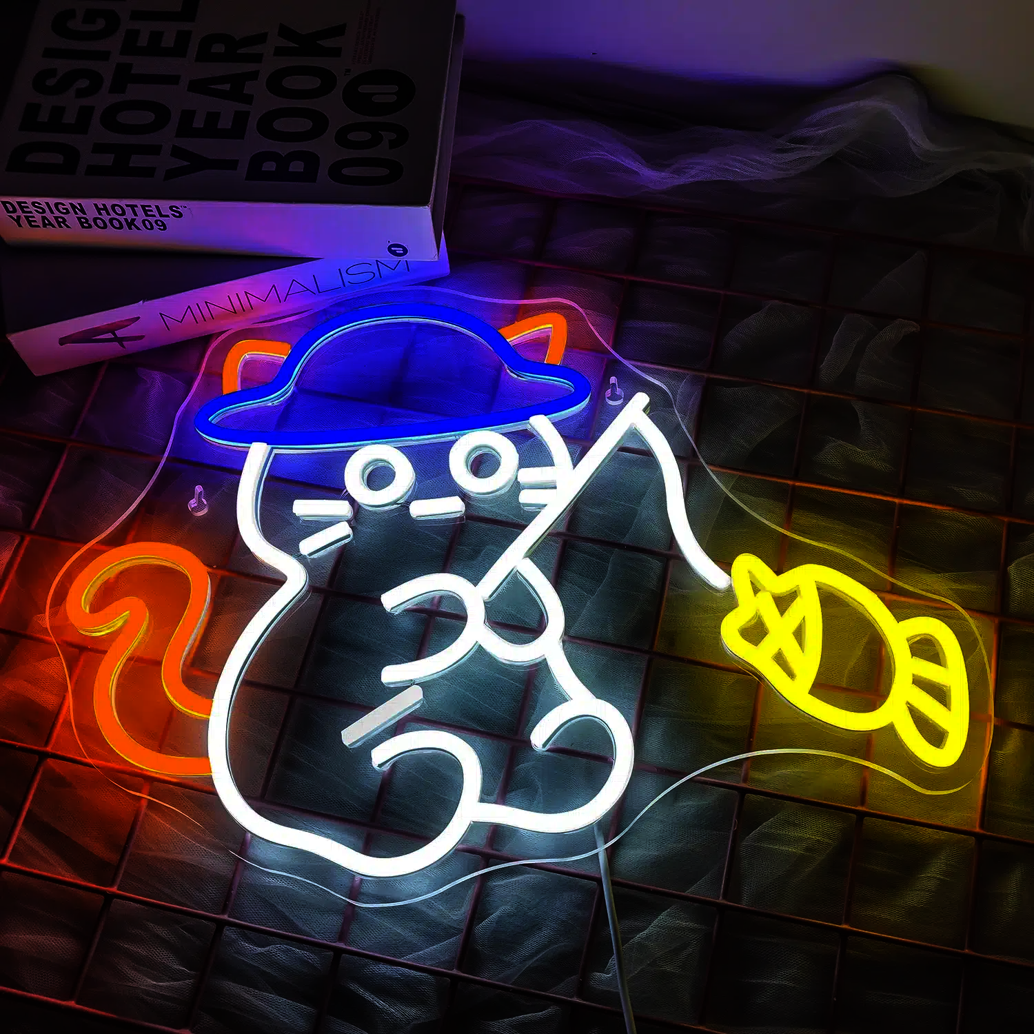 Ce Néon Chat Pêcheur s’adresse particulièrement aux amoureux des chats et aux passionnés de pêche qui souhaitent afficher leur passion de manière originale.