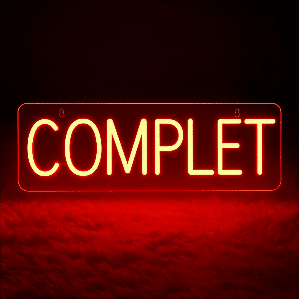 Le Néon Complet s’adresse particulièrement aux propriétaires d’hôtels, de chambres d’hôtes ou de gîtes souhaitant afficher leur statut de réservation avec une touche rétro authentiquement française.