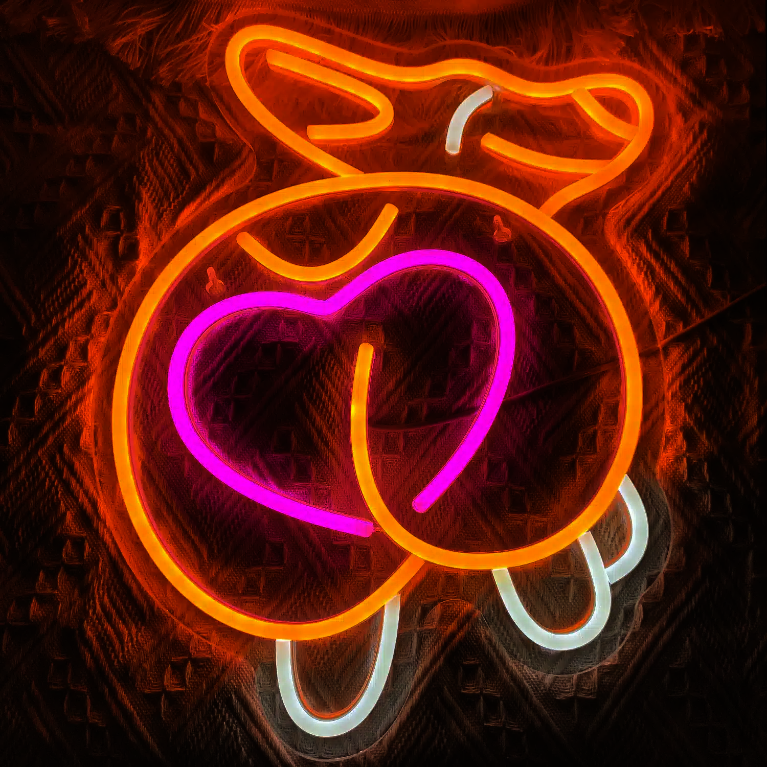 L’élément le plus amusant du Néon Corgi est sans doute son arrière-train bombé, représenté par un cœur rose lumineux.