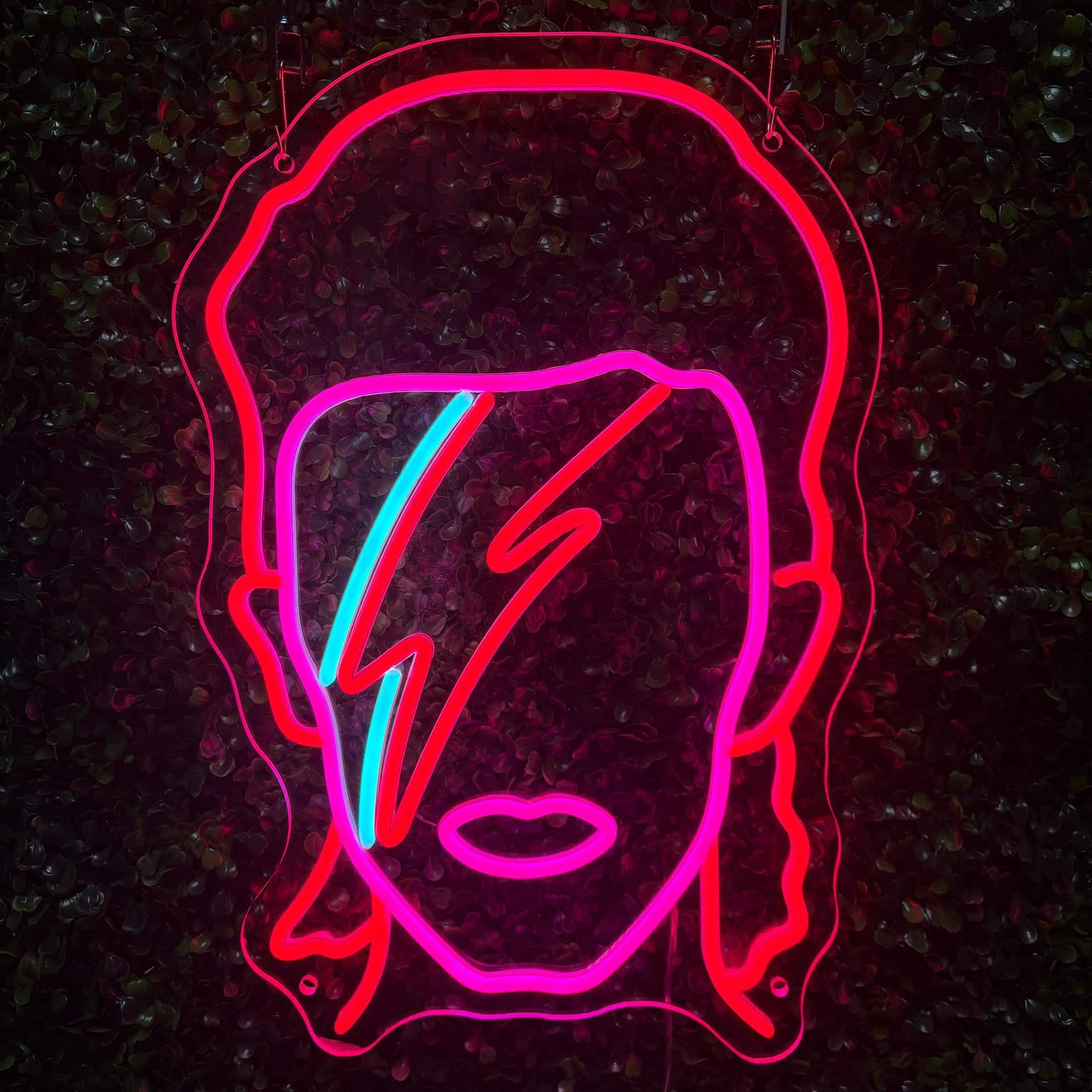 Le Néon David Bowie représente le visage emblématique du célèbre chanteur britannique.
