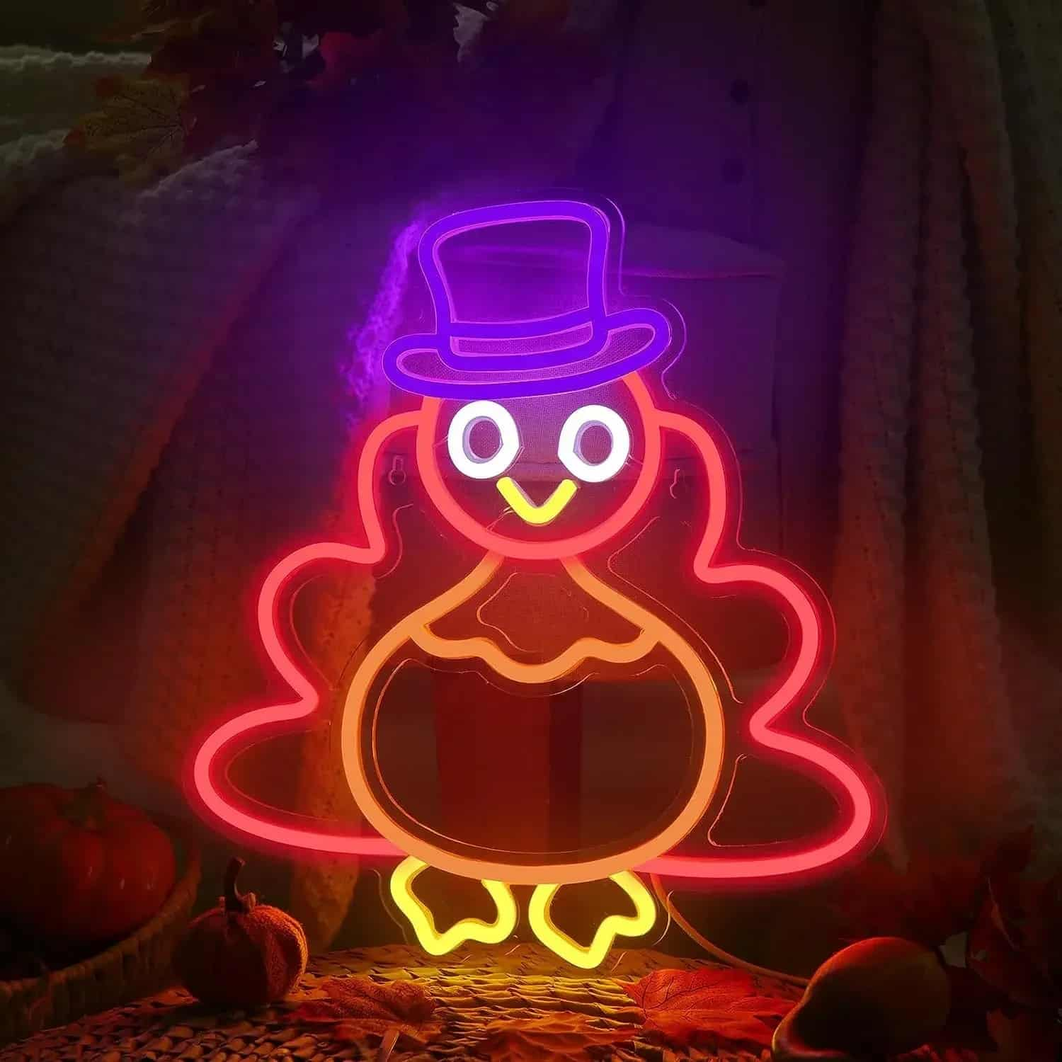 Le Néon Dindon représente un dindon joyeux et coloré.
