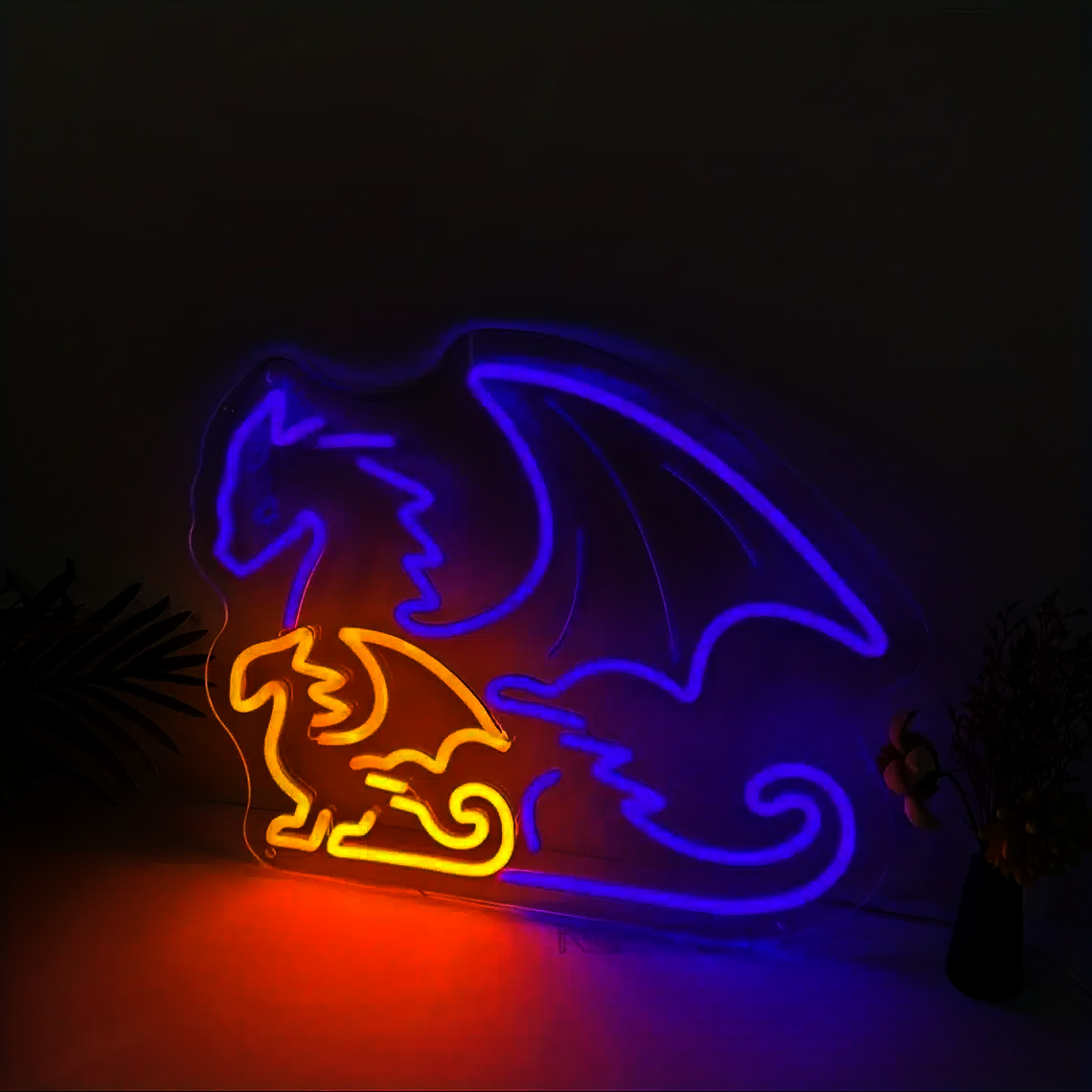 Le contraste entre les couleurs chaudes (orange) et froides (violet) du Néon Dragon crée une atmosphère à la fois chaleureuse et mystérieuse.