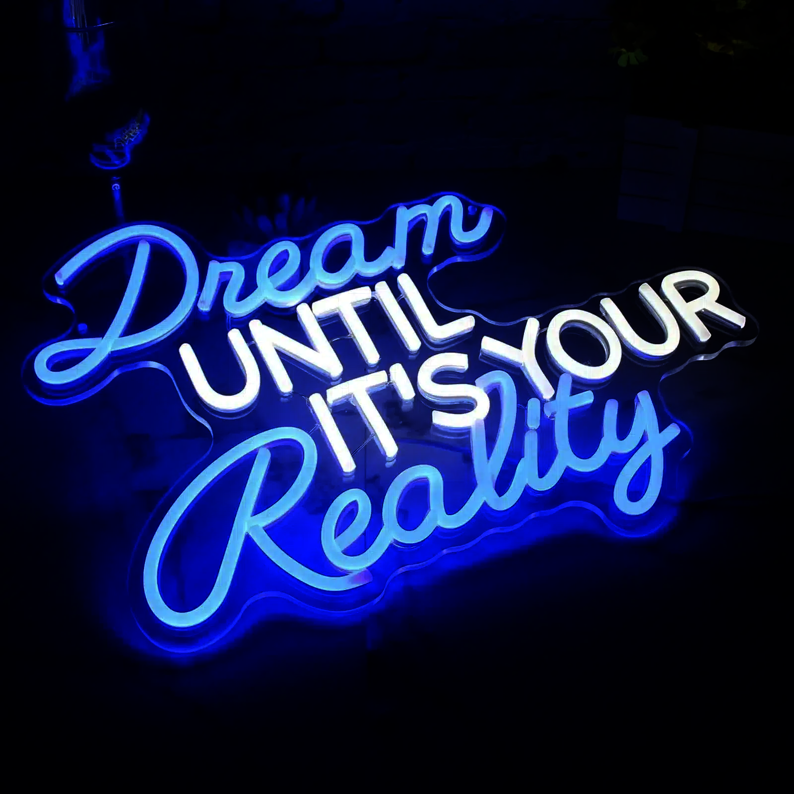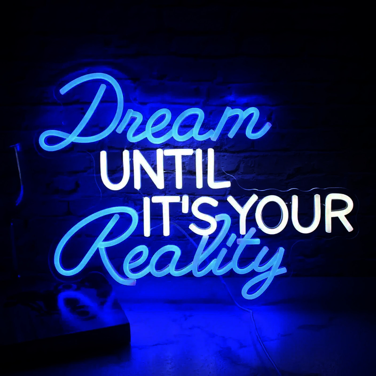 Le Néon Dream Until It’s Your Reality transmet un puissant message de persévérance : “Rêve jusqu’à ce que ce soit ta réalité”.