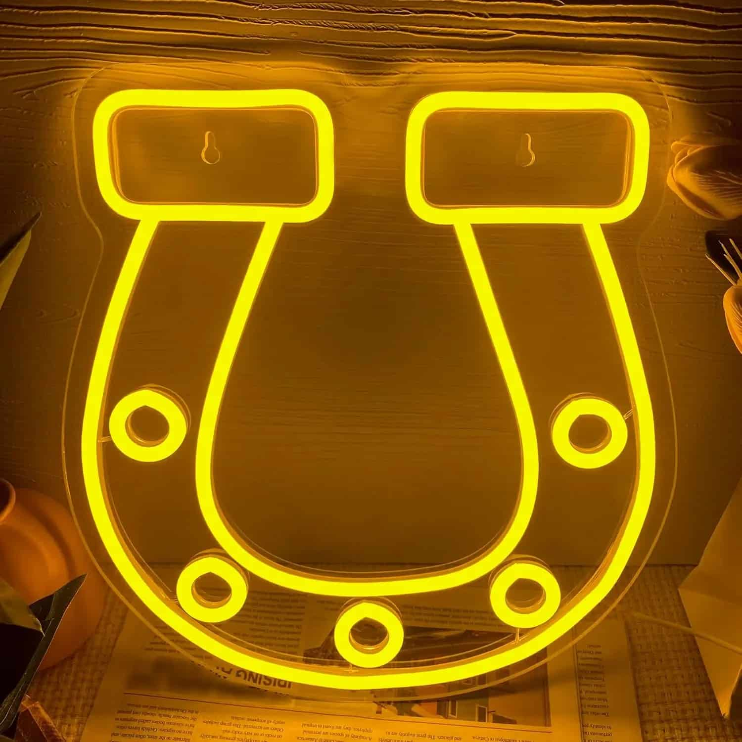 Le Néon Fer à Cheval apporte une touche de chance et de tradition à tout espace, que ce soit dans un salon, une écurie, ou même un bar à thème western.