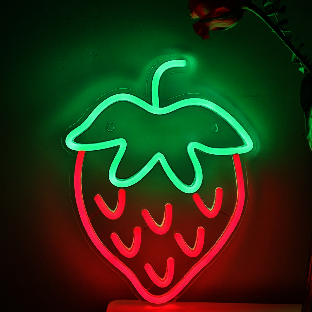 Le Néon Fraise s’adresse aux amateurs de décoration fruitée et colorée, parfait pour égayer une cuisine moderne, un bar à smoothies, ou même une chambre de gourmand.