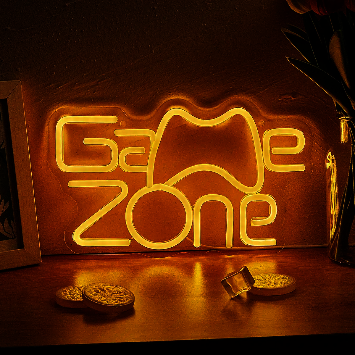 Le Neon Game Zone est un néon lumineux affichant le mot “game zone”.