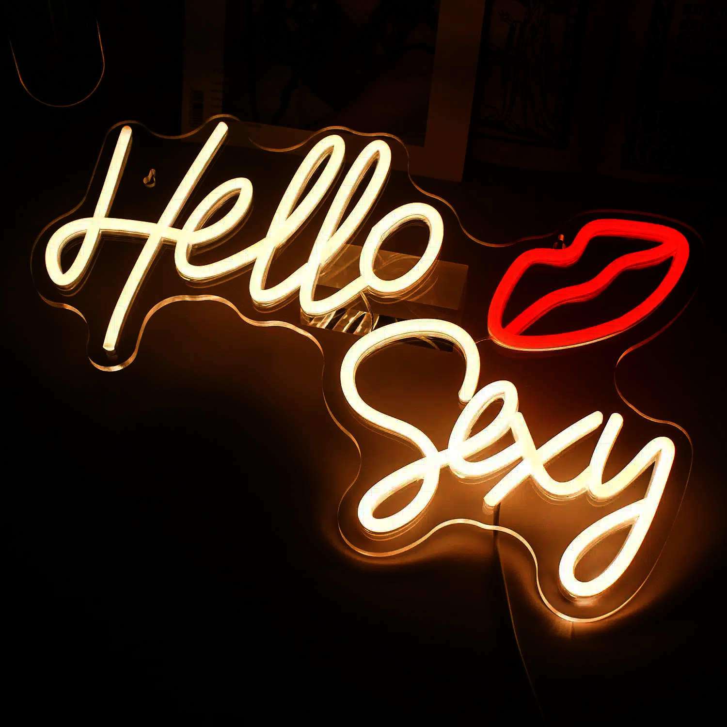 Le Néon Hello Sexy affiche le message “Hello Sexy”, se traduisant en français par “Bonjour Sexy”, une salutation aguicheuse qui ne manquera pas d’attirer l’attention.