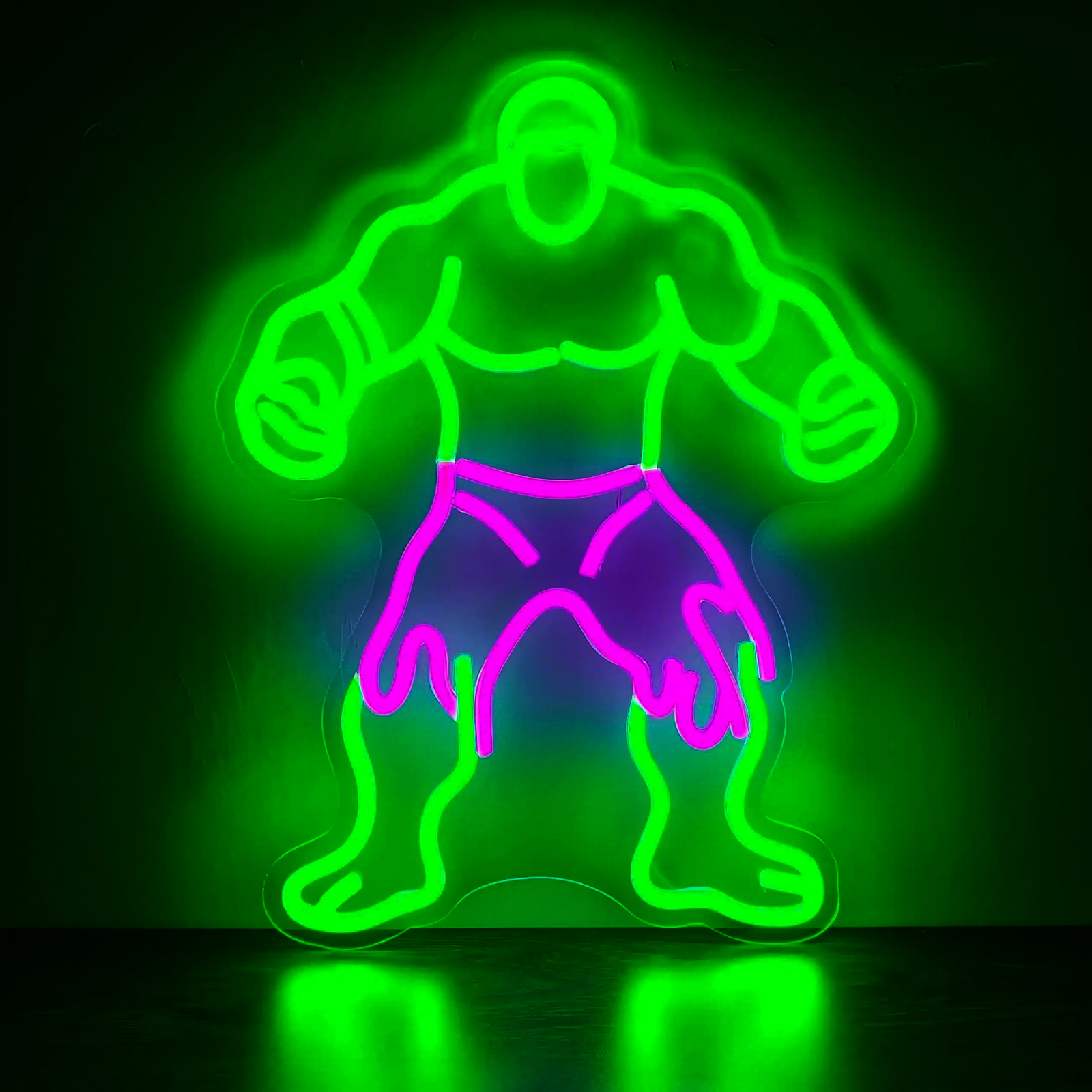 Le Néon Hulk représente la silhouette musclée du célèbre super-héros vert de Marvel, avec son torse puissant et ses poings serrés prêts au combat.