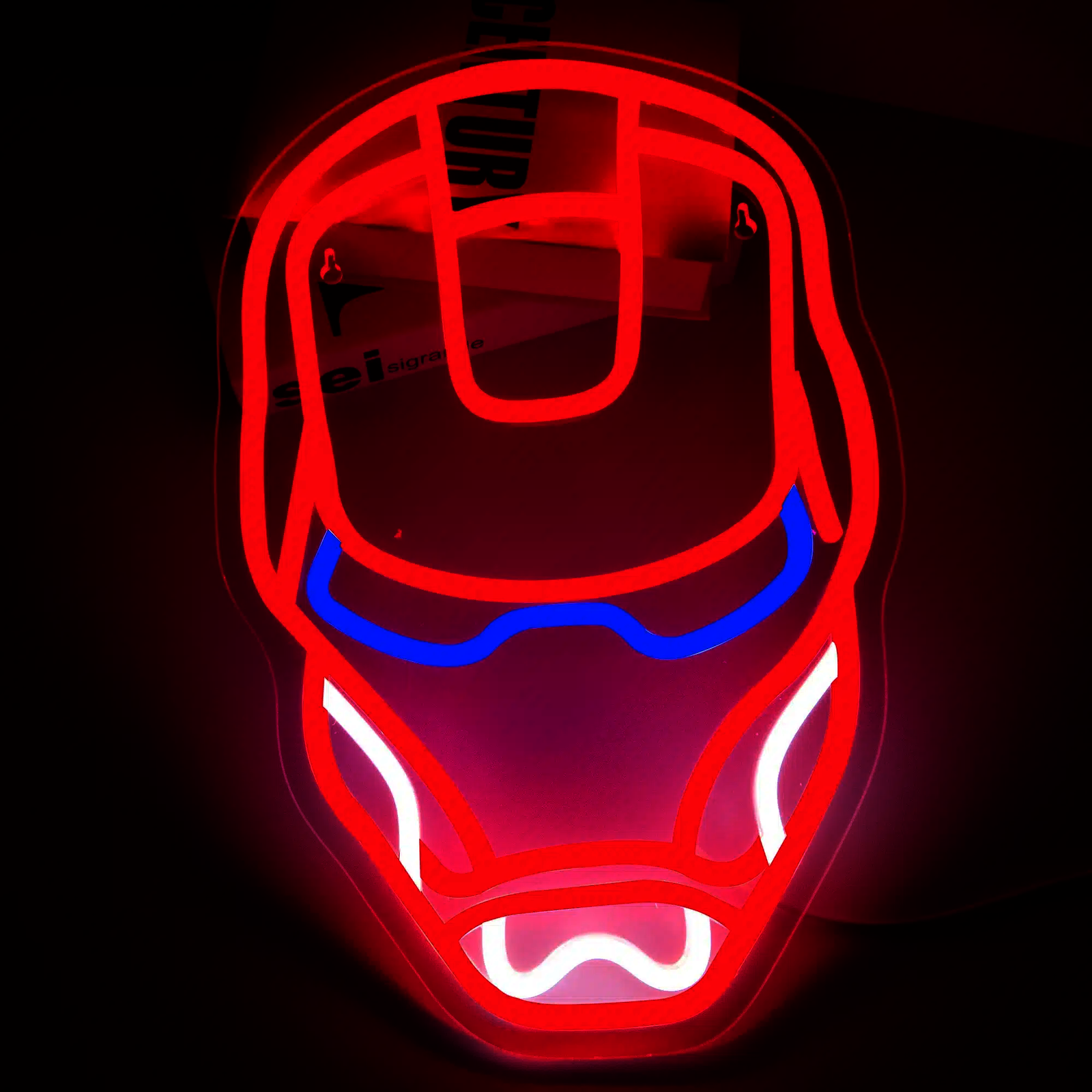 Le Néon Iron Man représente le célèbre casque du super-héros de Marvel, Iron Man.