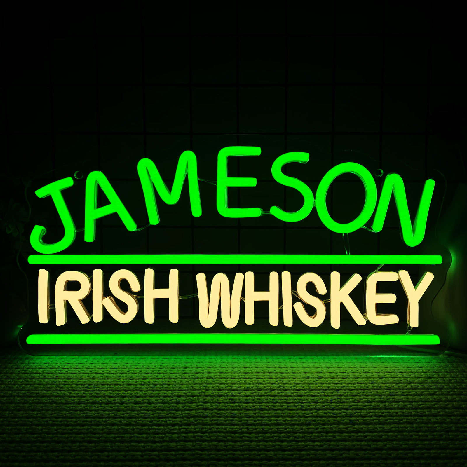 Le Néon Jameson Irish Whiskey capture fidèlement le logo emblématique de la célèbre marque de whiskey irlandais.