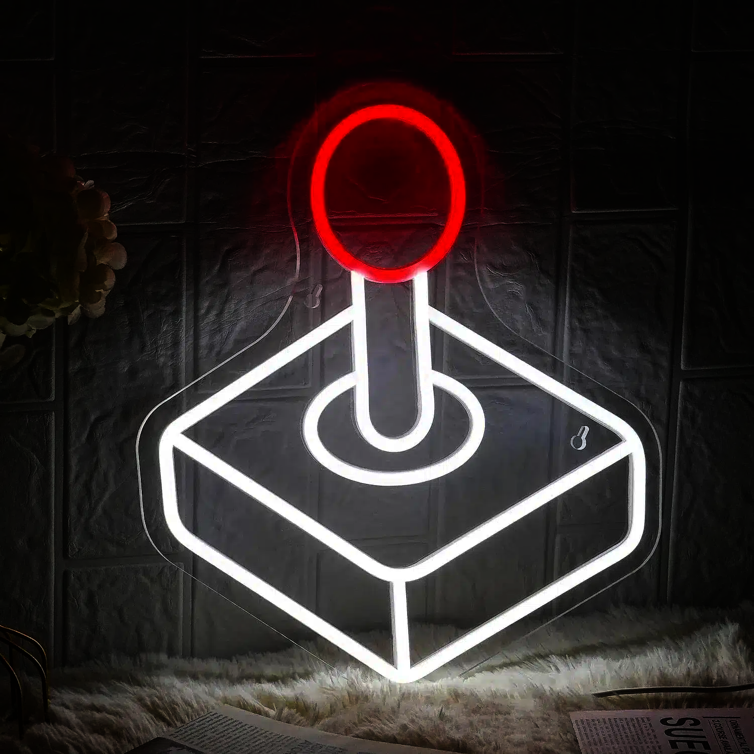 Ce néon lumineux capture l’essence du gaming classique avec sa forme caractéristique de joystick.