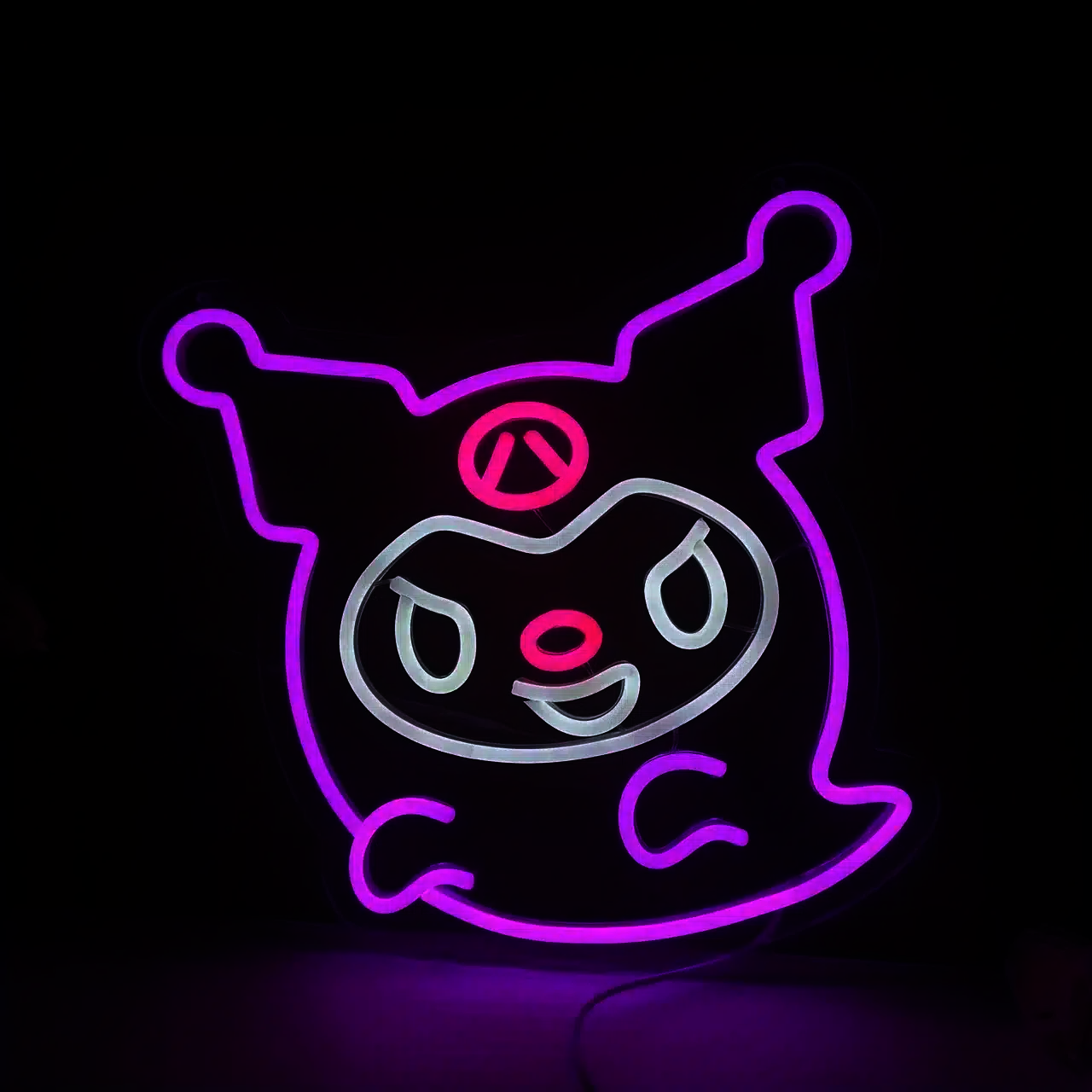 Le Néon Kuromi Fantôme représente le personnage Kuromi de l’univers Hello Kitty, stylisé avec une apparence fantomatique.