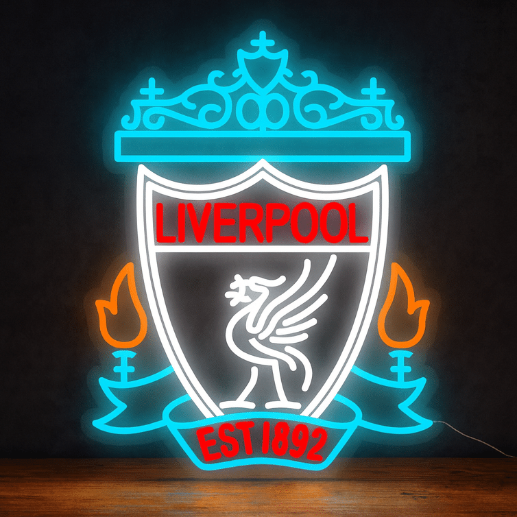 Le Neon Liverpool FC reproduit fidèlement l’emblème officiel du célèbre club de football anglais avec ses couleurs caractéristiques rouge et blanc.