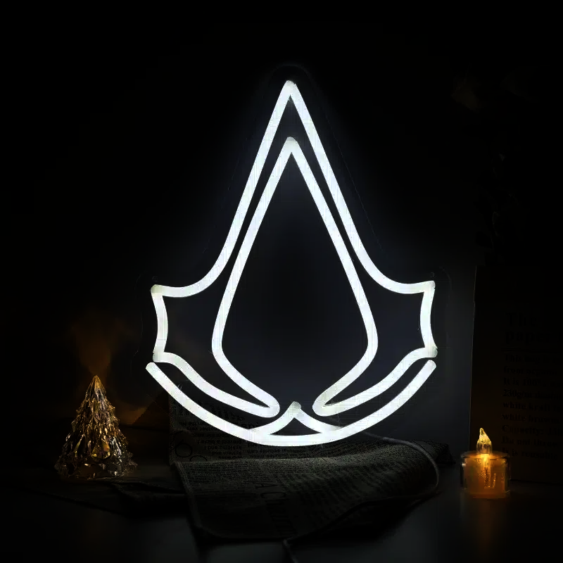Le Néon Logo Assassin’s Creed représente l’emblématique symbole de la franchise de jeux vidéo à succès.