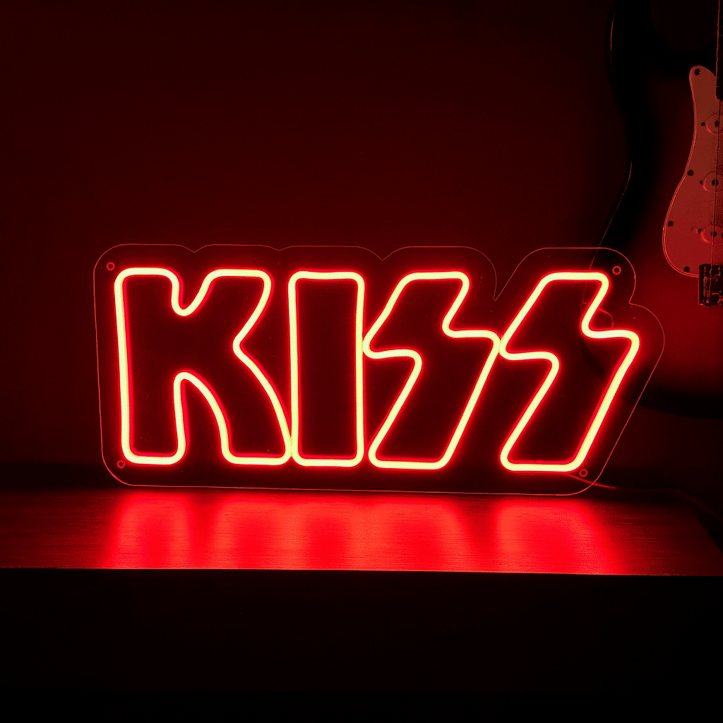 Le Néon Logo Groupe KISS reproduit fidèlement le célèbre logo du groupe de rock américain avec ses quatre lettres iconiques en rouge vif.