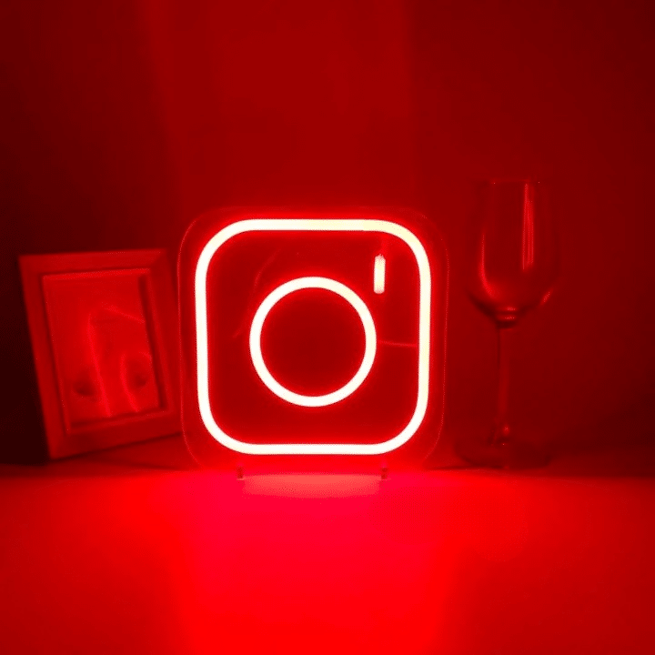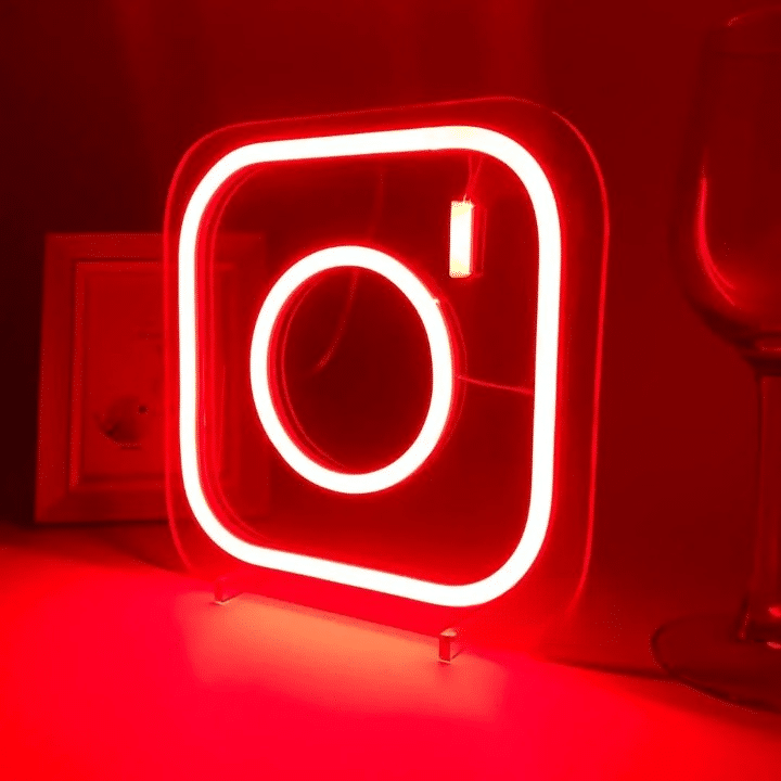 Le Neon Logo Instagram représente le célèbre logo de l’application de partage de photos et de vidéos Instagram, sous forme de néon lumineux.