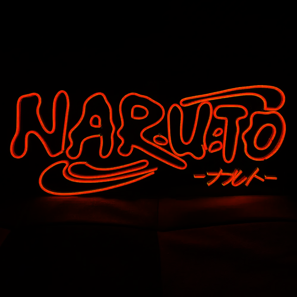 Le Néon Logo Naruto représente le logo de la franchise d’anime et manga japonais, illuminé dans une éclatante couleur orange-rouge.