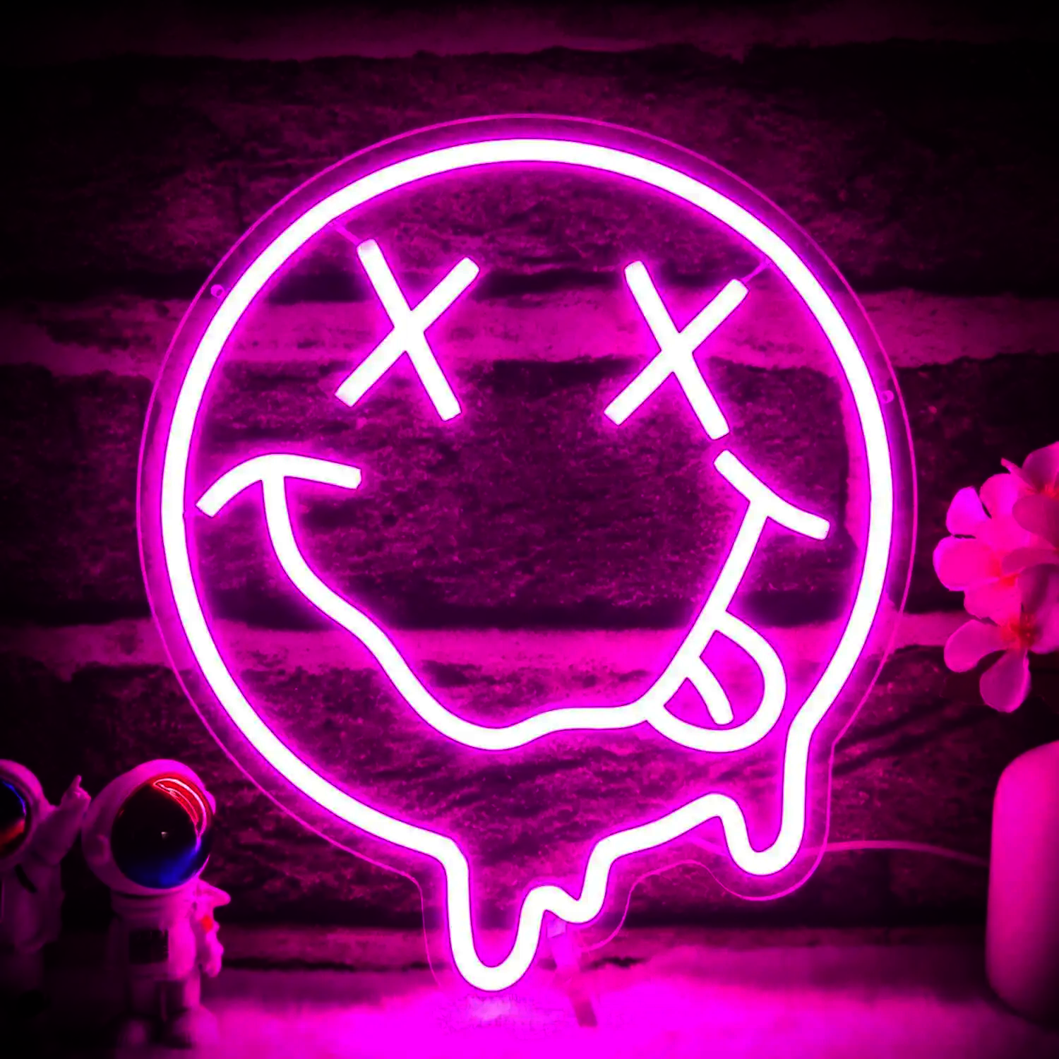 Le Néon Logo Nirvana représente l’emblématique smiley dégoulinant du groupe de grunge légendaire, entièrement réalisé en néon rose.