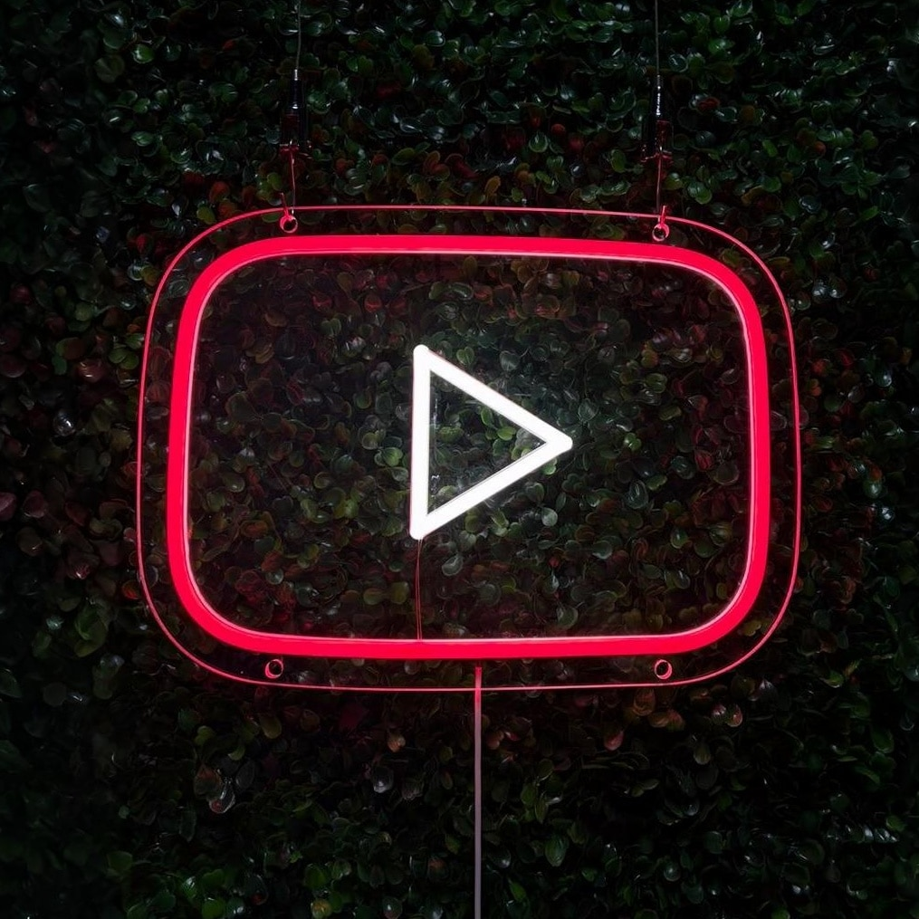 Le Néon Logo YouTube représente l’emblématique bouton de lecture de la célèbre plateforme de partage de vidéos en ligne.
