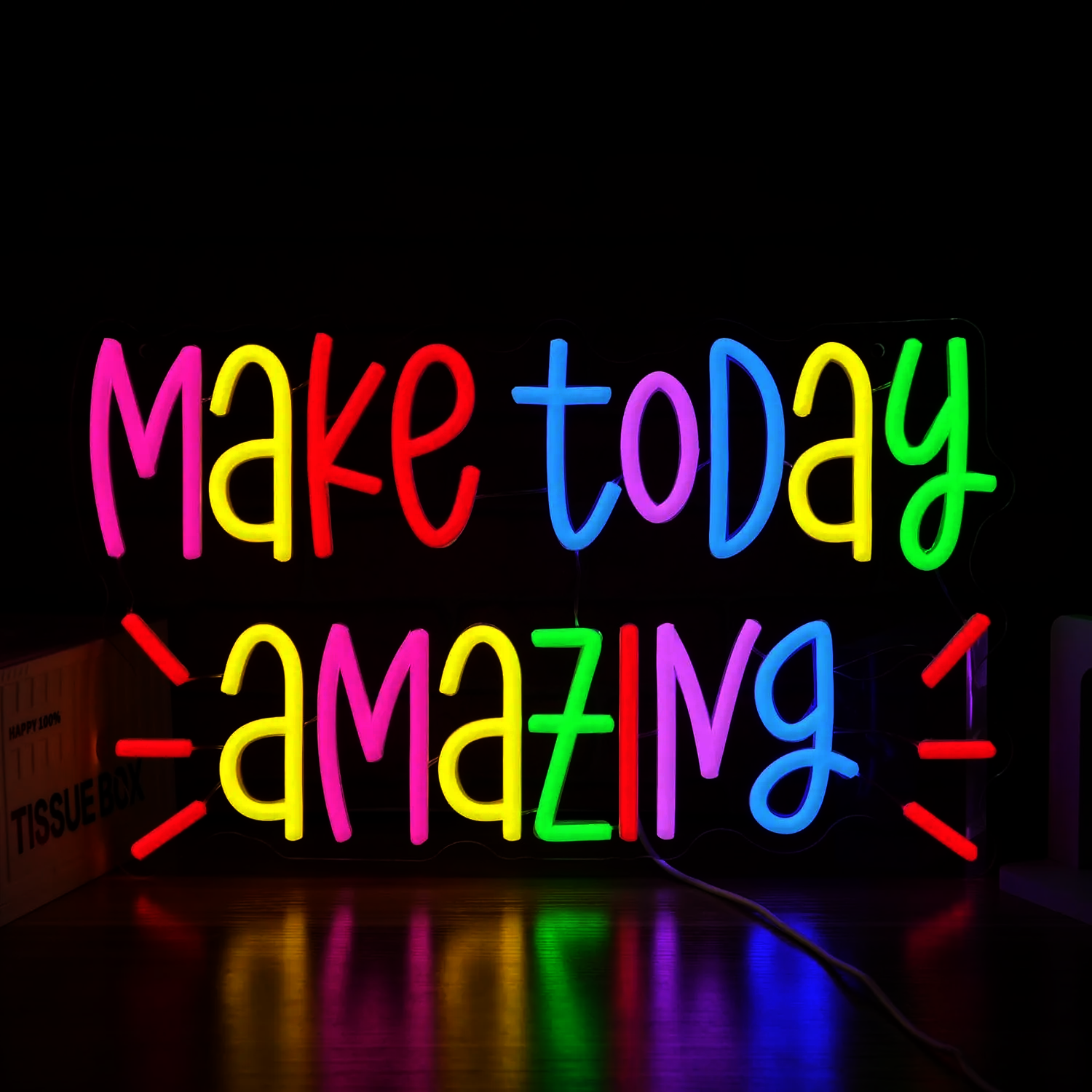 Le Neon Make Today Amazing affiche le message inspirant “Make Today Amazing” en lettres colorées et lumineuses.