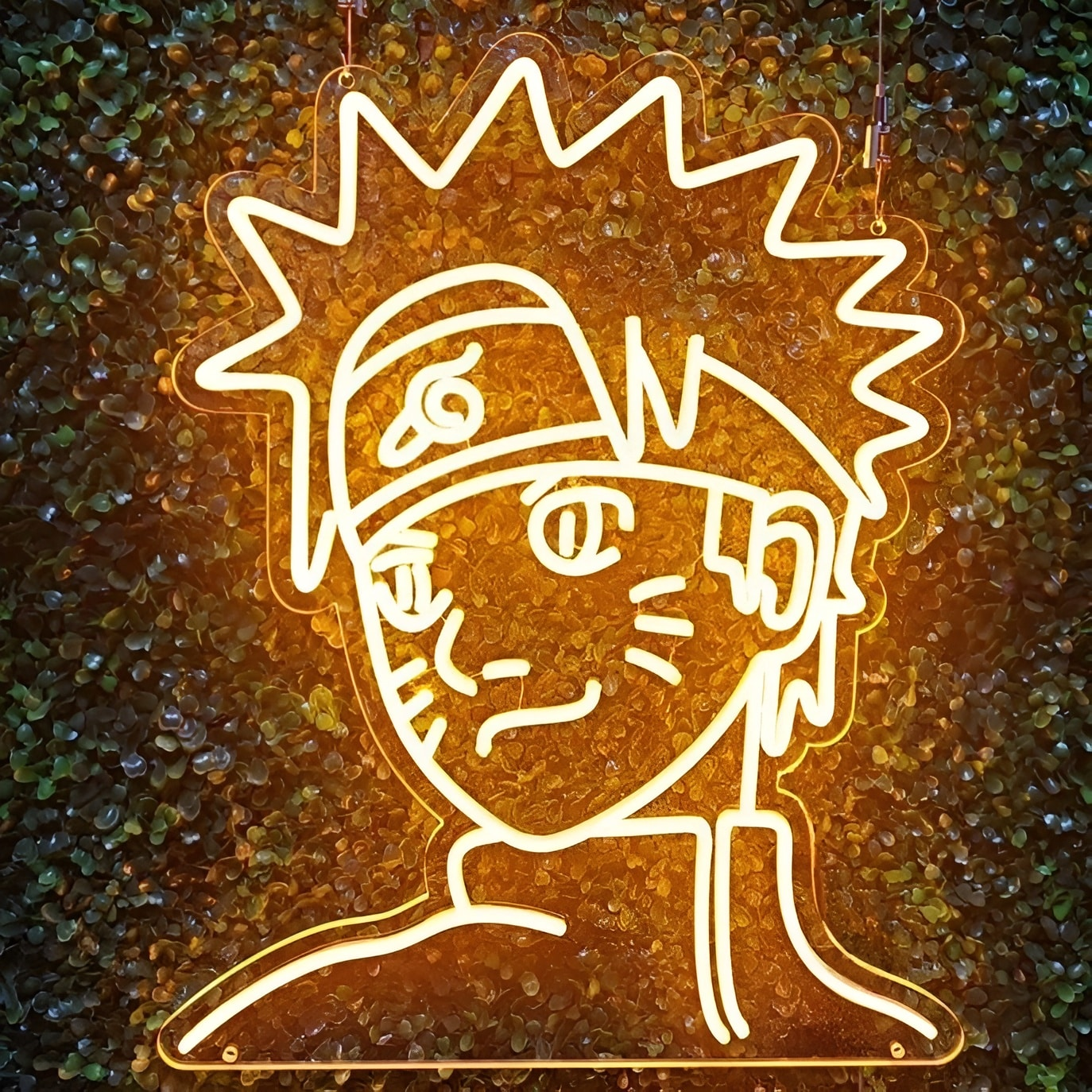 Le Néon Naruto Uzumaki représente le visage emblématique du personnage principal de la célèbre série manga et anime japonaise, Naruto Uzumaki.
