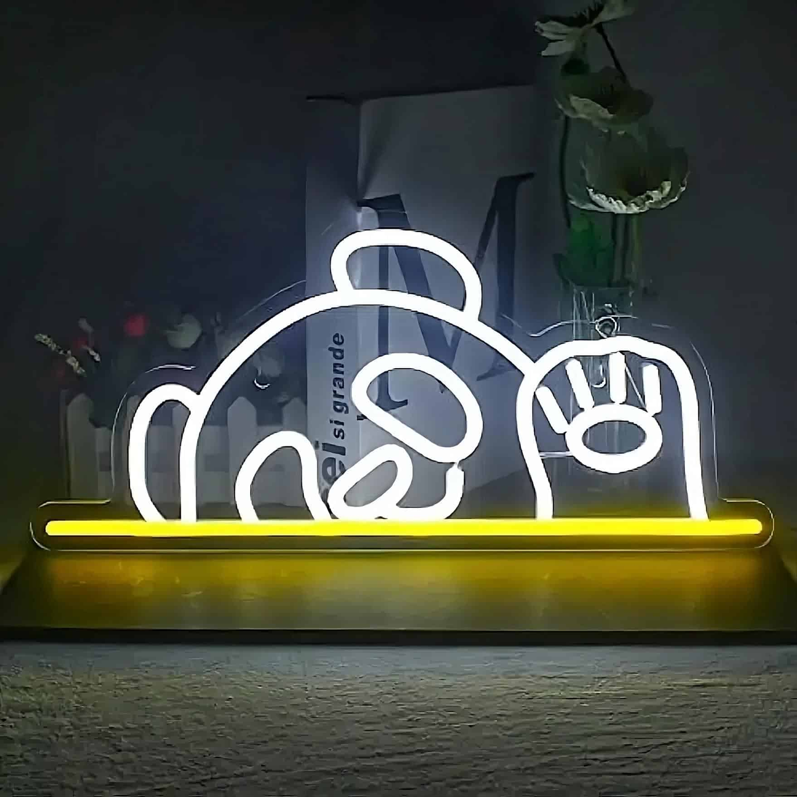 Ce néon capture parfaitement l’essence charmante et joviale du panda, animal emblématique connu pour sa nature paisible et son apparence attachante.