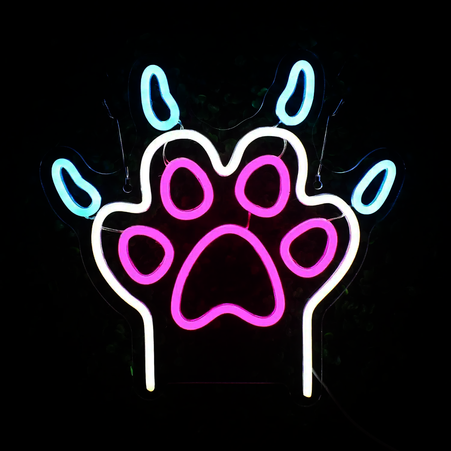 Le Néon Patte Chat représente une empreinte de patte féline en bandes LED néon.