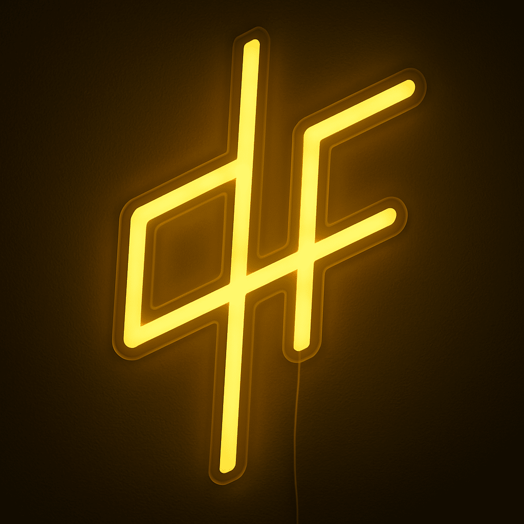 Le Néon QLF (PNL) reproduit le célèbre logo du duo de rap français PNL, composé des lettres “Q”, “L” et “F” entrelacées dans un design géométrique sophistiqué.