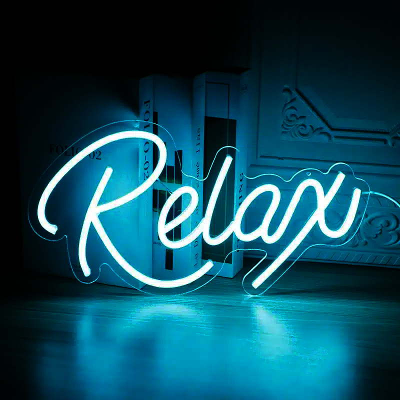 Le Neon Relax illumine votre espace d’une lumière bleue douce et d’un texte “relax” en écriture manuscrite élégante, invitant au calme et à la sérénité. Disponible aussi en jaune chaud pour une ambiance chaleureuse.
