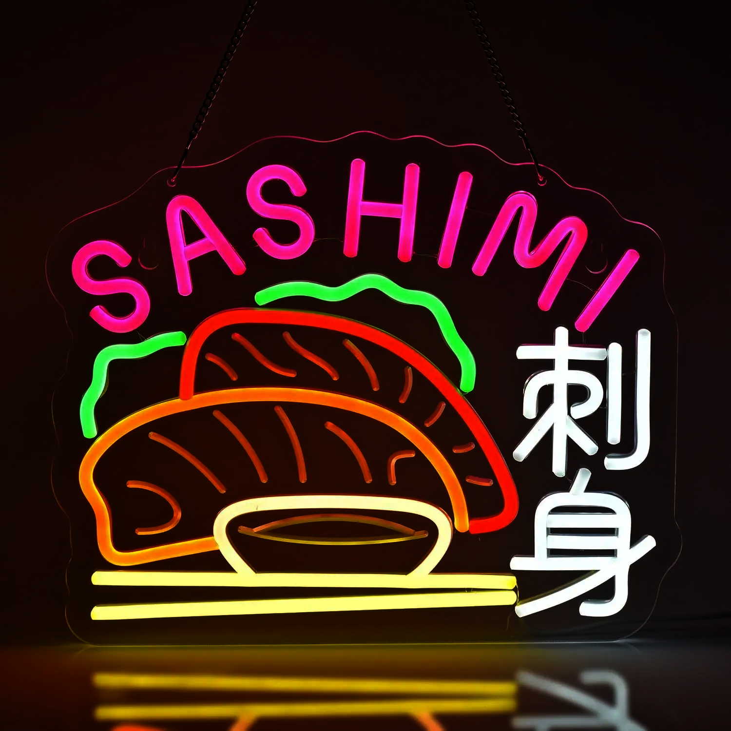 Le Néon Sashimi peut également servir d’élément décoratif original dans un espace dédié à la culture japonaise ou à la cuisine du monde.