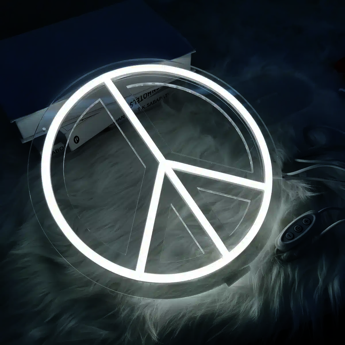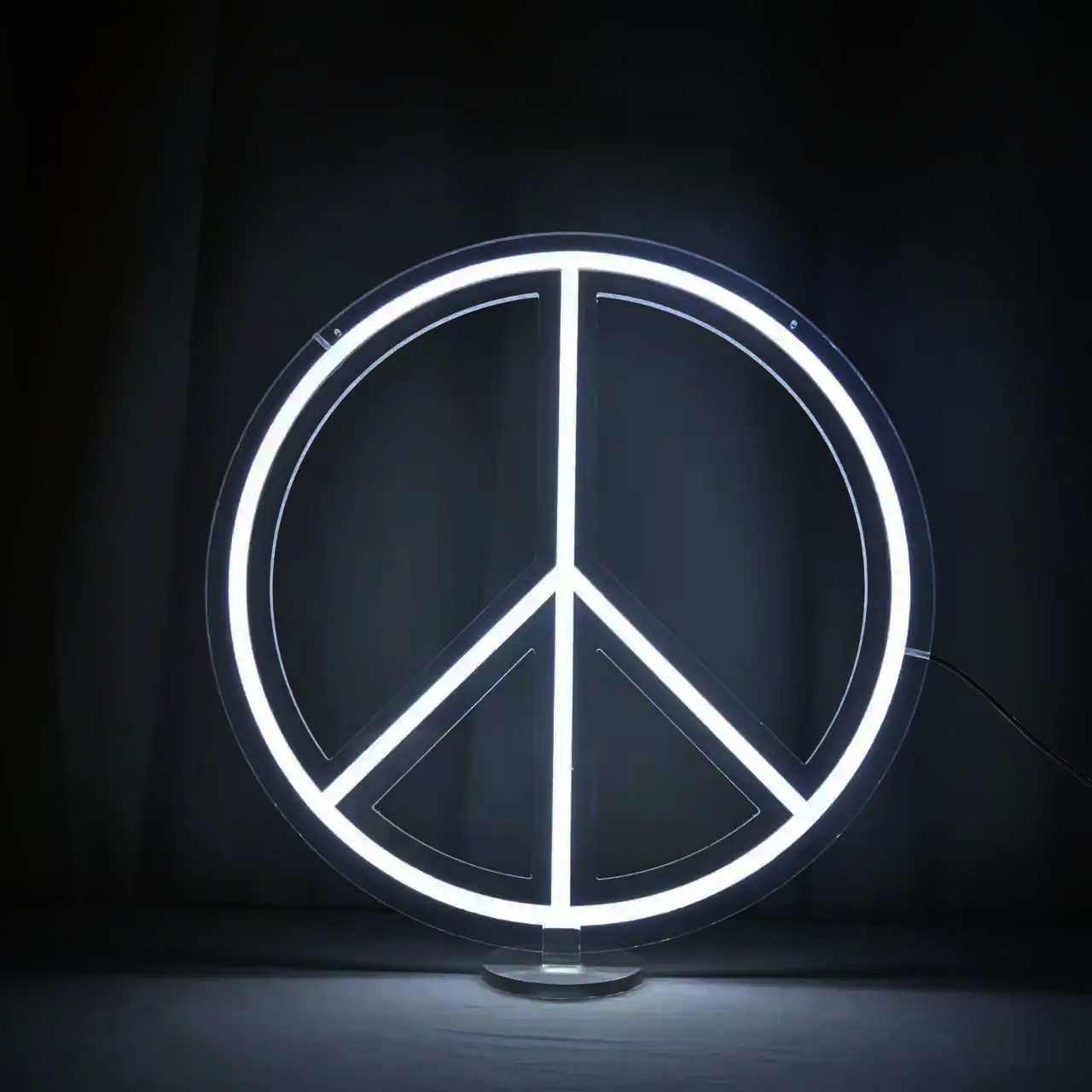 Le Néon Symbole Paix capture cette essence en transformant ce signe historique en une œuvre lumineuse contemporaine.