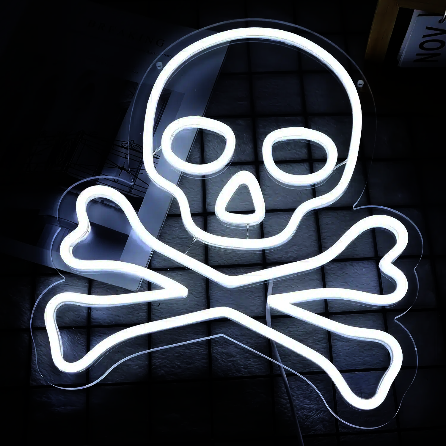 Le Néon Tête de Mort représente le symbole emblématique du danger et de la rébellion : un crâne humain surplombant deux os croisés.