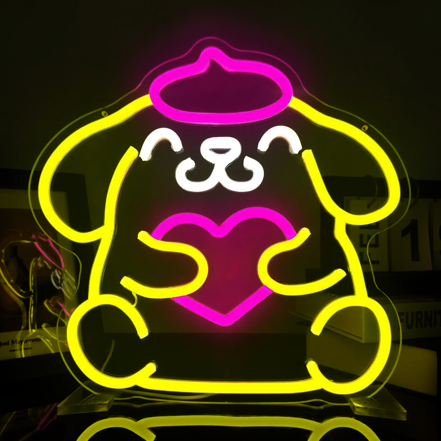Le Néon Pompompurin représente le célèbre chien doré de l’univers Sanrio, reconnaissable à son béret rose et à son expression attendrissante.